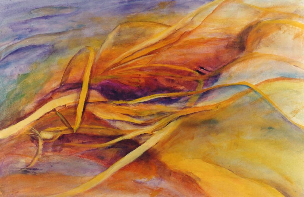Blattgespinst, Acryl auf Leinwand, 1990, 100×65 cm