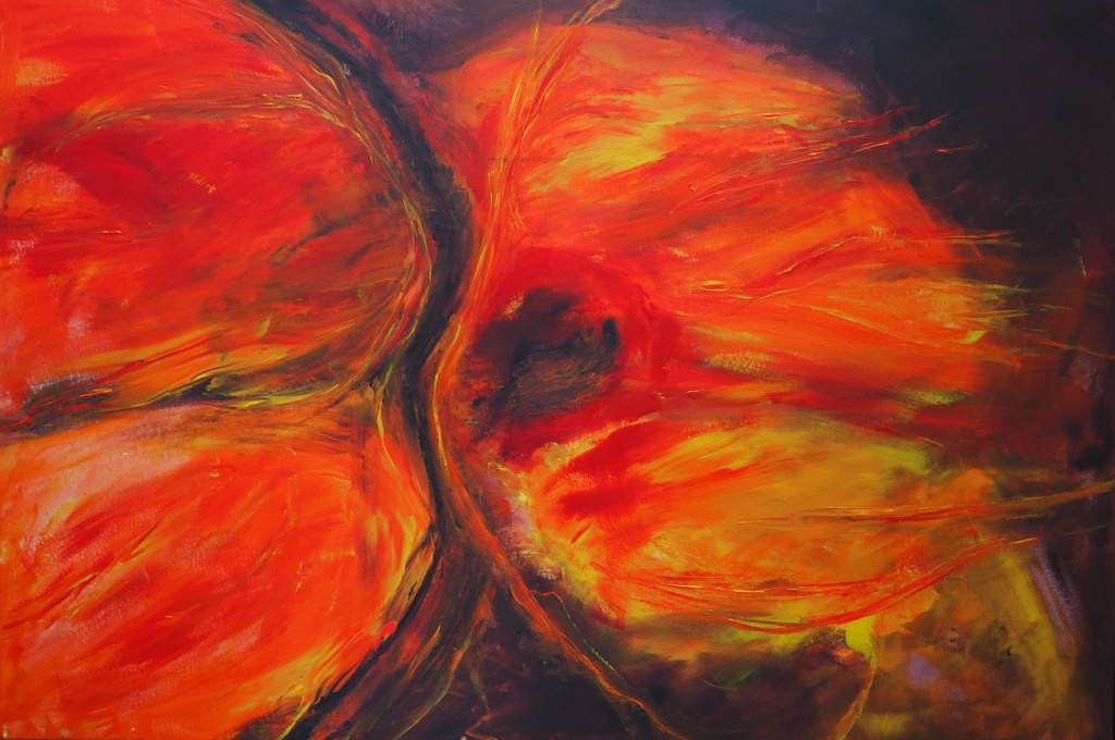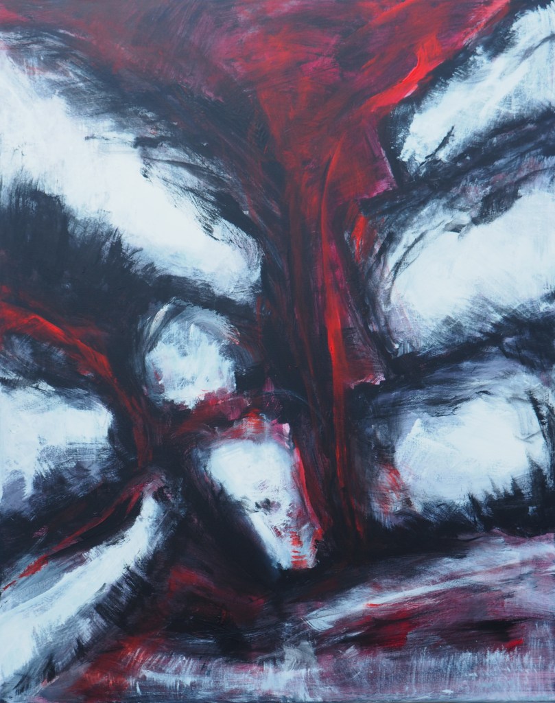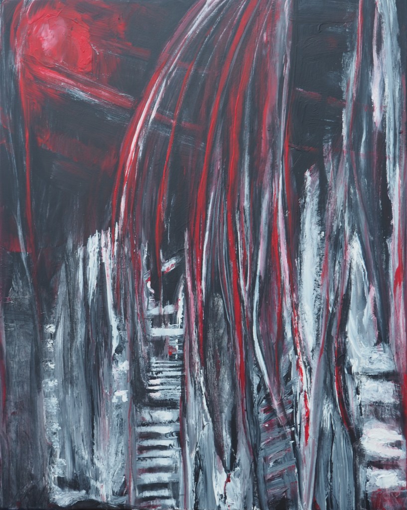 Die Welt sieht rot, Acryl auf Leinwand, 2018, 80×100 cm